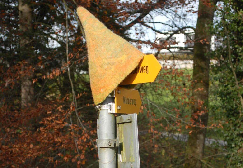 Huobenfangwald Rothenburg, Treffpunkt Anfang Huobenfangwald beim Buzibach/2 rote Bänkli